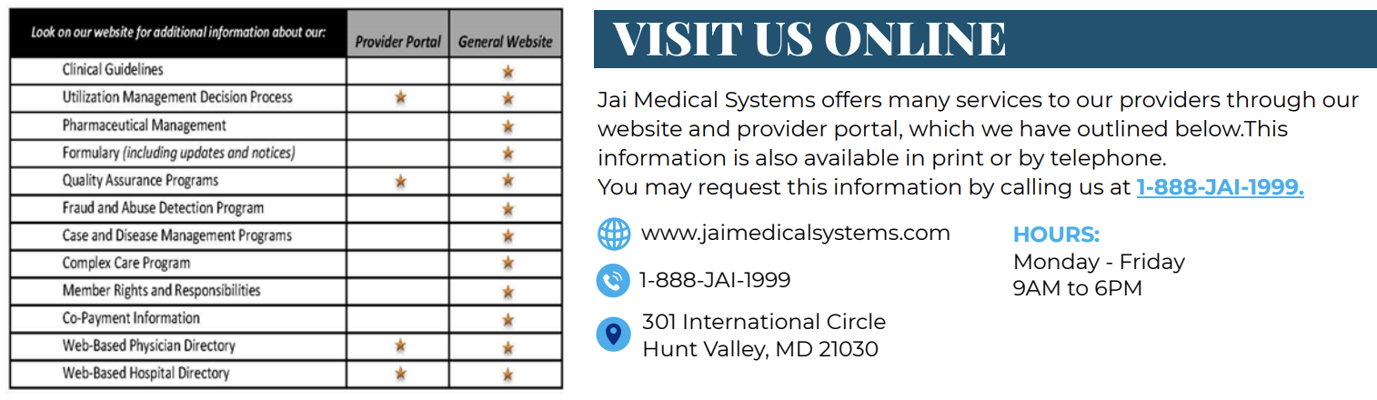 I hope you are enjoying the start of spring and the brighter days ahead. On an annual basis, Jai Medical Systems conducts a Provider Satisfaction Survey to assess overall provider satisfaction within our network and improve the services and benefits we offer.